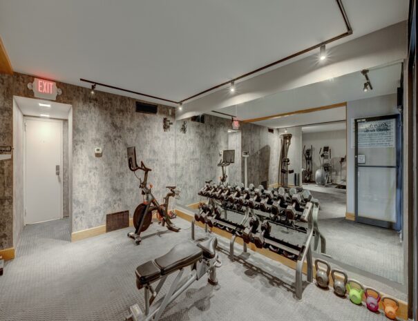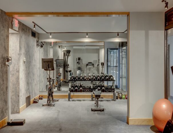Our fitness center caters to any style of working out. The fitness center provides free weights, cardio equipment, pully weight system and matt work out.